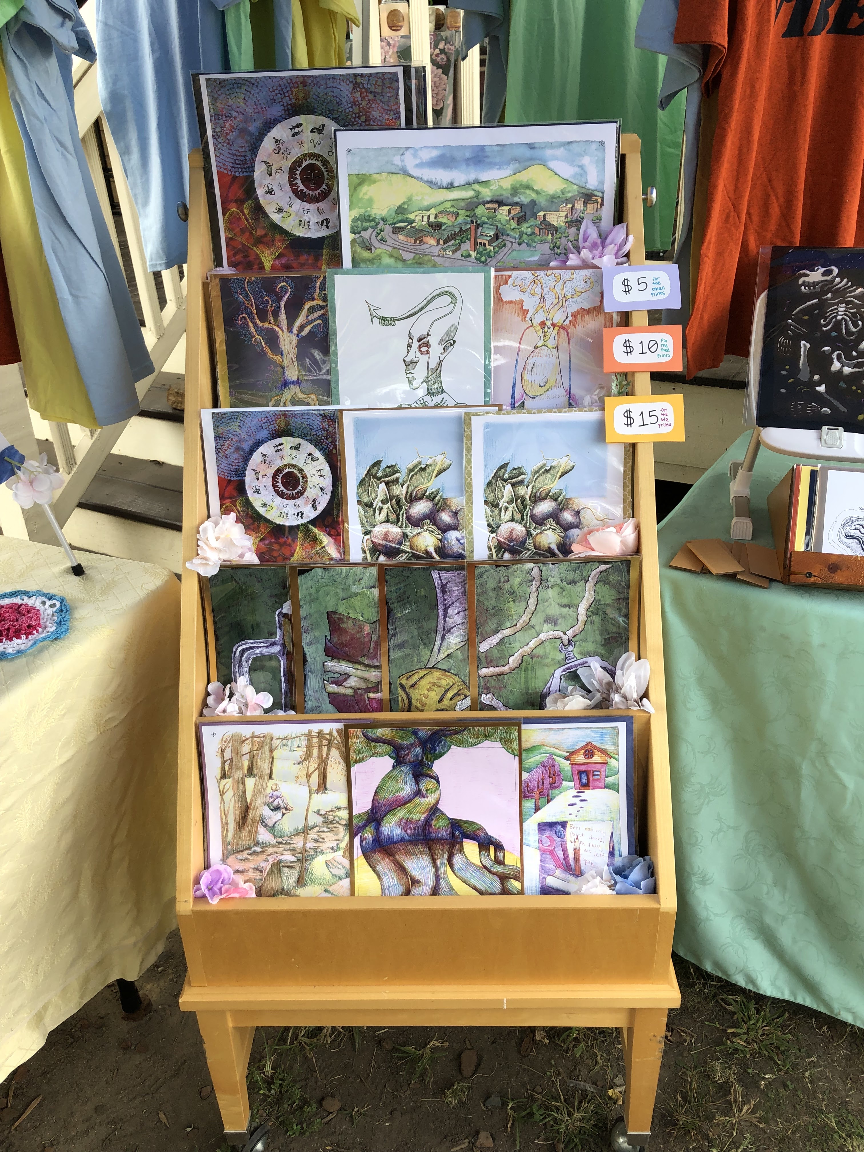 Mabon is the pagan holiday for the time of harvest, celebrating all that you’ve yielded from the year and blessing one’s winter with prosperity. Not only did I spend the month leading up to the festival working twelve hour days between my jobs and prepping the prints for sale, but the entire year was a challenge of applying my productivity for worthwhile outcomes. This festival was, symbolically in a way I hadn’t intended, everything that Mabon was meant to be – a pat on my own back, honking my own horn, and eating and having the fruitcake of my own labor.