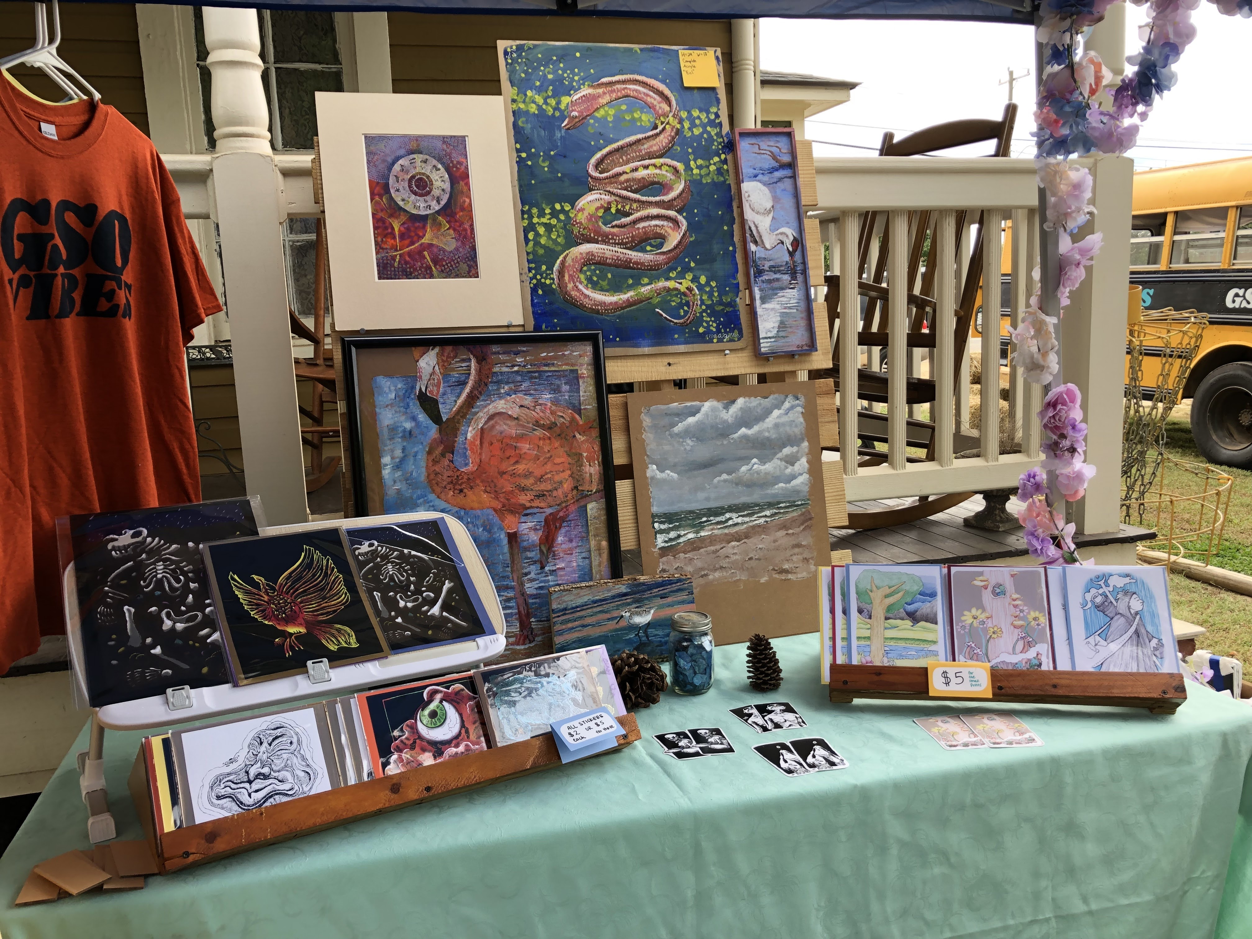 And I couldn’t have done it without my friends and family. My mom, who has been and will always be my greatest investor; my dad, whose pride in my artistic abilities is my most powerful motivator; my partner, who not only built the structures for display, purchased all the decor for Bailey, cooked all the. meals while Photoshop held me by the throat, but also continuously reminded me that I deserved it all; my friends, who were not only present but remained for the greater part of the event and regularly reminded me to sit and enjoy myself rather than work the entire time; so many others including my stepparents, Pete’s parents, roommates, and the Oden crew; and a special thanks to Bob Powell who, upon hearing me finally agree to be a vendor after a month’s consideration said, “Good, ’cause you’re already on the list.”