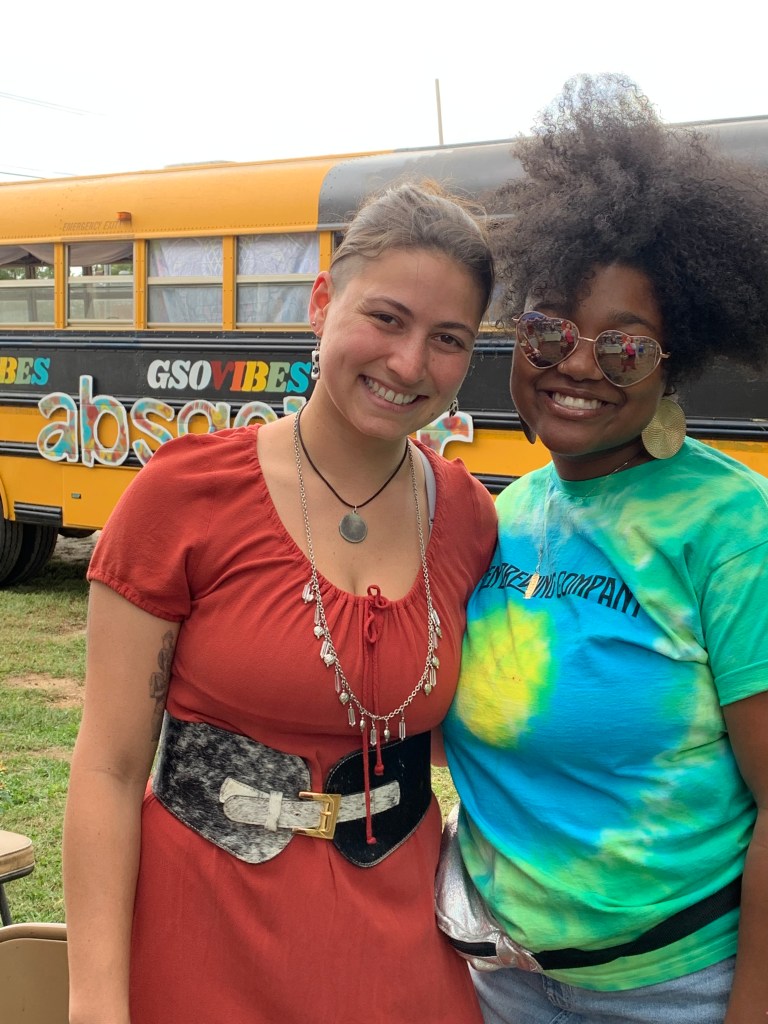 If a festival can host her, Bailey the Bus is coming with me. So the night before, we loaded her up with everything – all the furniture, hay bales, foldable tents and tables, and extension chords. At 9 AM day of (an hour late by our own plans), Bailey rolled into Oden’s parking lot with their event coordinator recording the moment – shout out to Chee Chee for all her help in coordinating, decorating, and most of all appeasing my anxieties!
