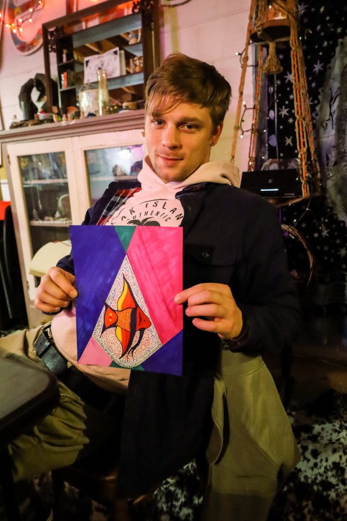 The boys joined us later in the evening and somehow still completed fantastic pieces. Check out Charlie’s lava-lamp-esque fish!