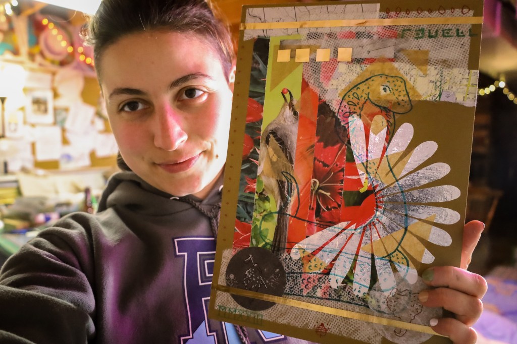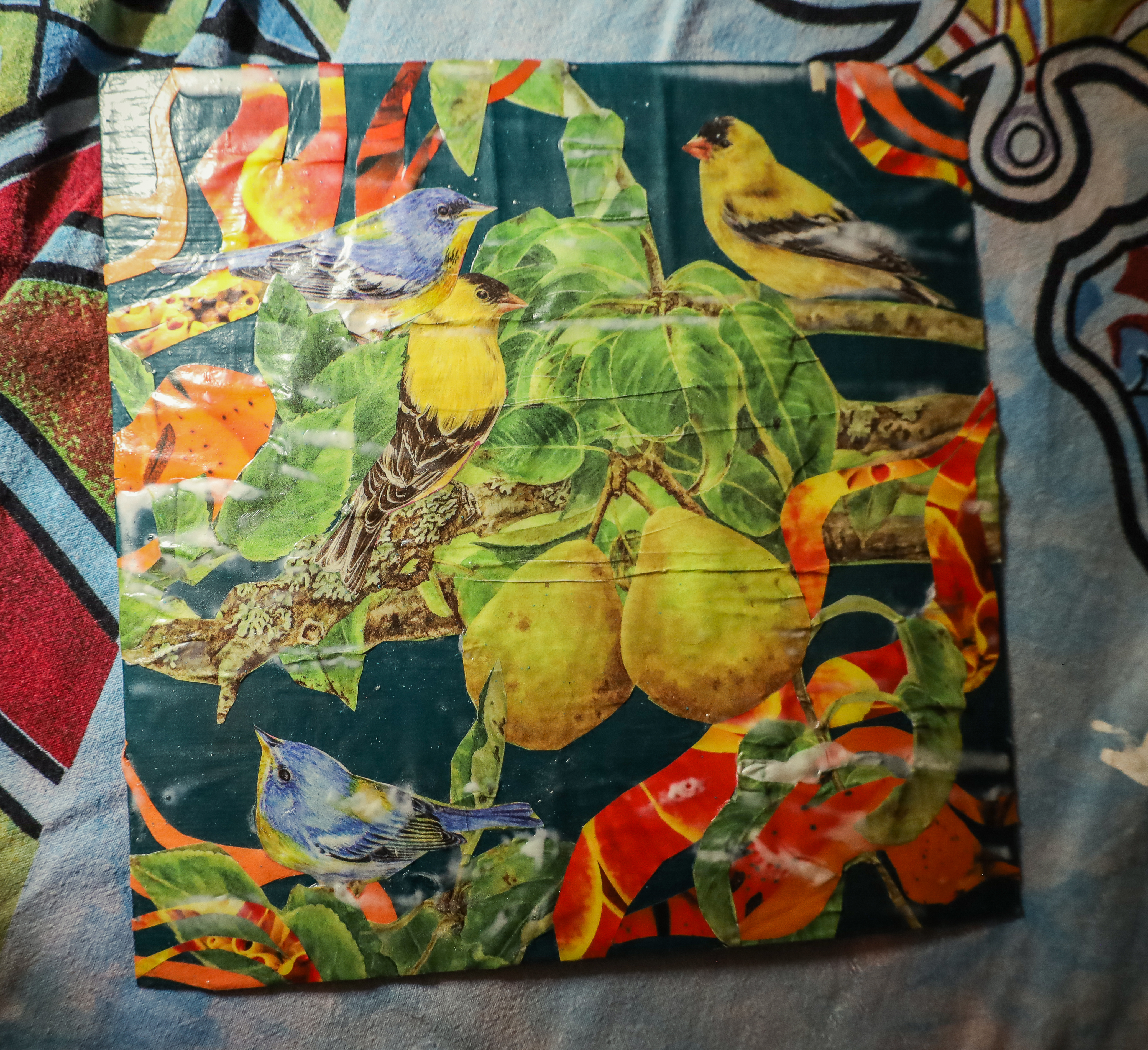 Calvin blew me away with how she immersed herself in this collage. Eyes glued to the images, hands glued to the scissors, glues glued to the glue – I was inspired to be as intent on my collage, in turn.