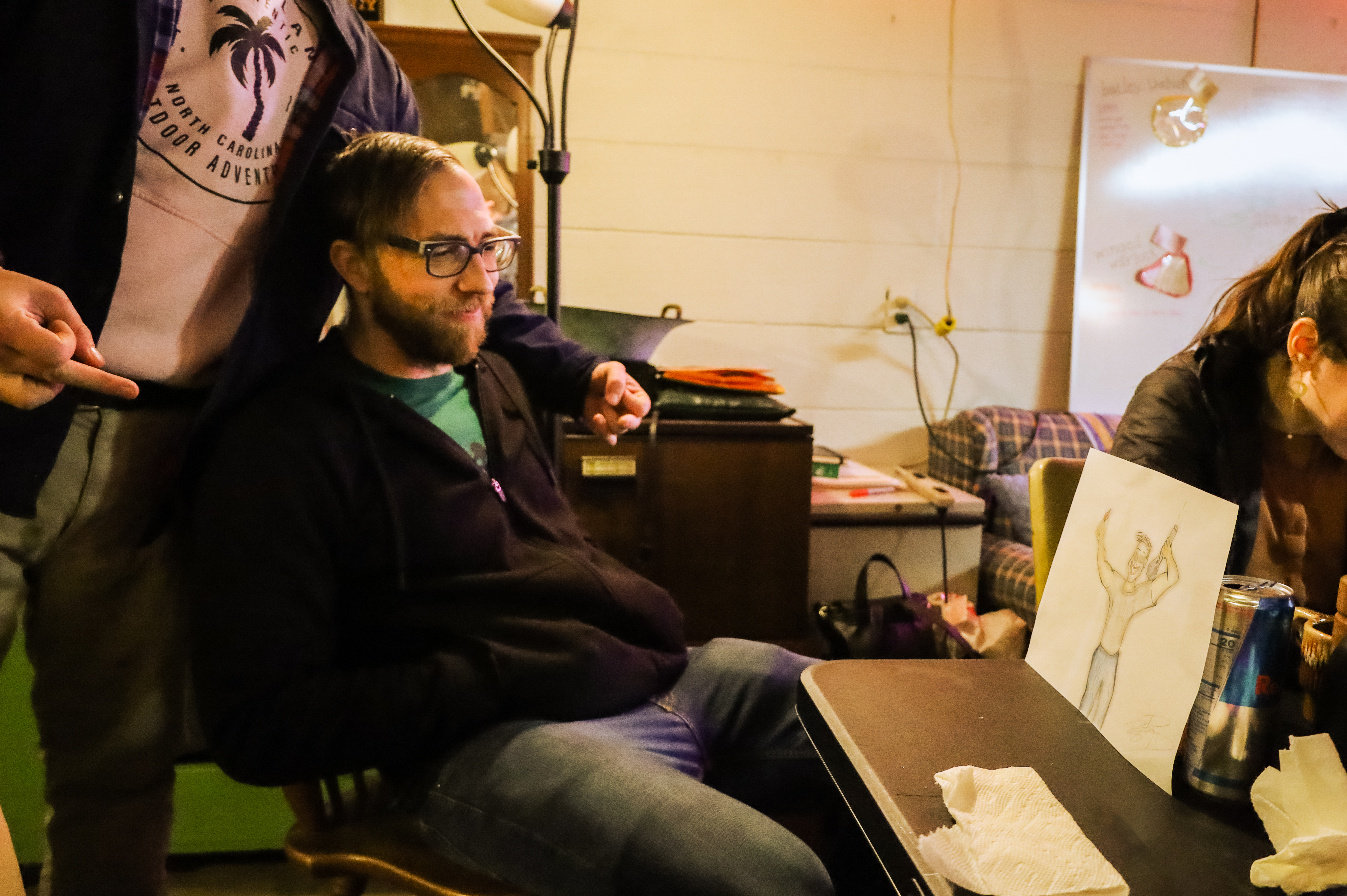 Using all pen and sharpie, the design turned out vibrant, dramatic, and powerful. Whether he realizes it or not, the compositionally divided color scheme appears calculated (af). Glad to have some of the musicians join us to express themselves visually, as well.