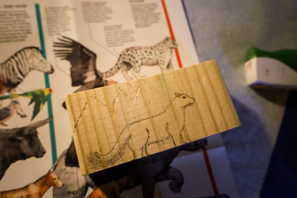 At this Art Club event, he was the pyromancer of our indoor wood burning stove, herb master of our shared hot tea, fruit bearer of the full pan of sliced oranges, and in the image shown, wood burner of a leopard – ’twas his first time wood burning, too.