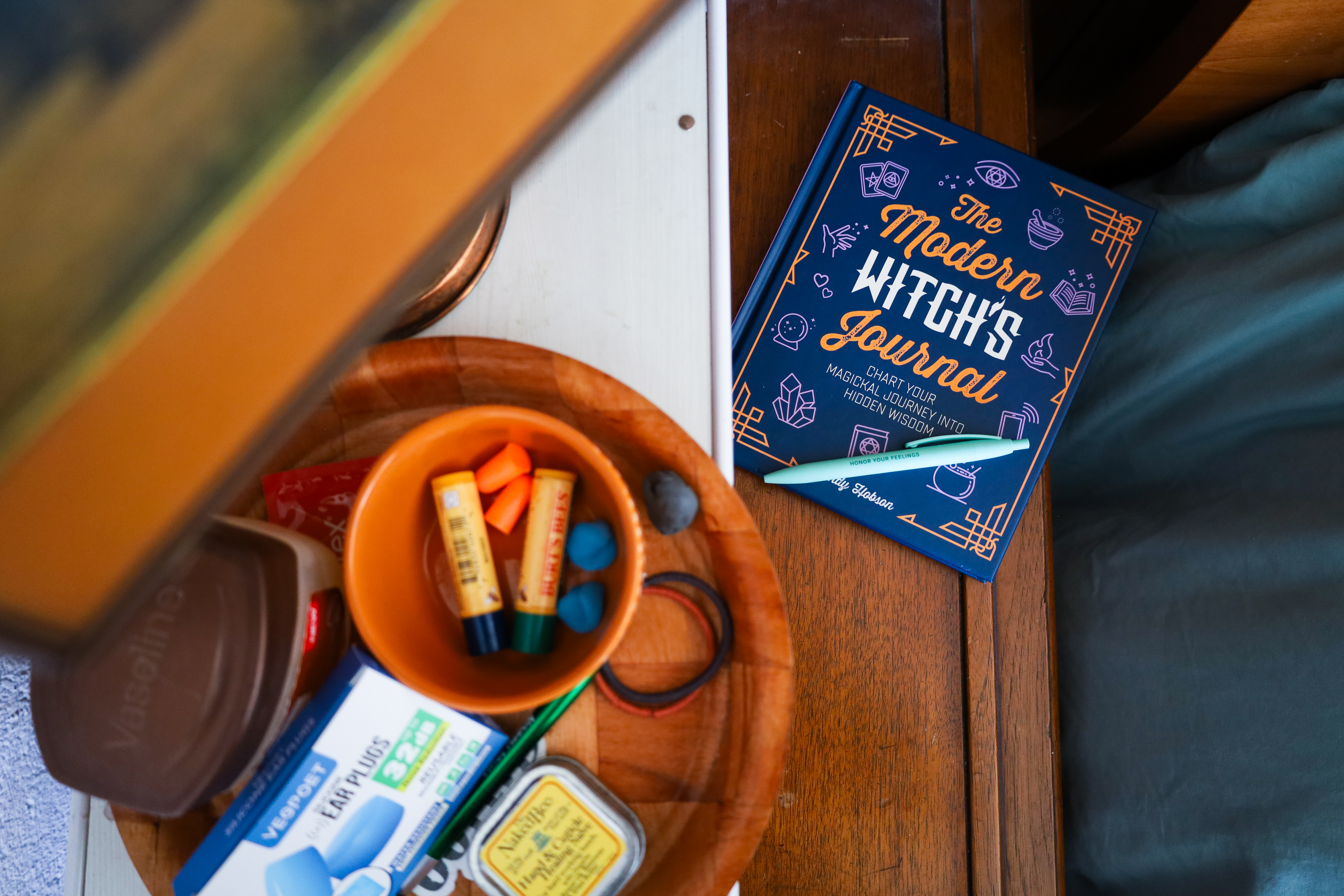 • A modern witch’s journal (courtesy of my friends Chris & B) next to my bed for my before-sleep time, so I don’t spend my final waking moments looking at my phone screen.