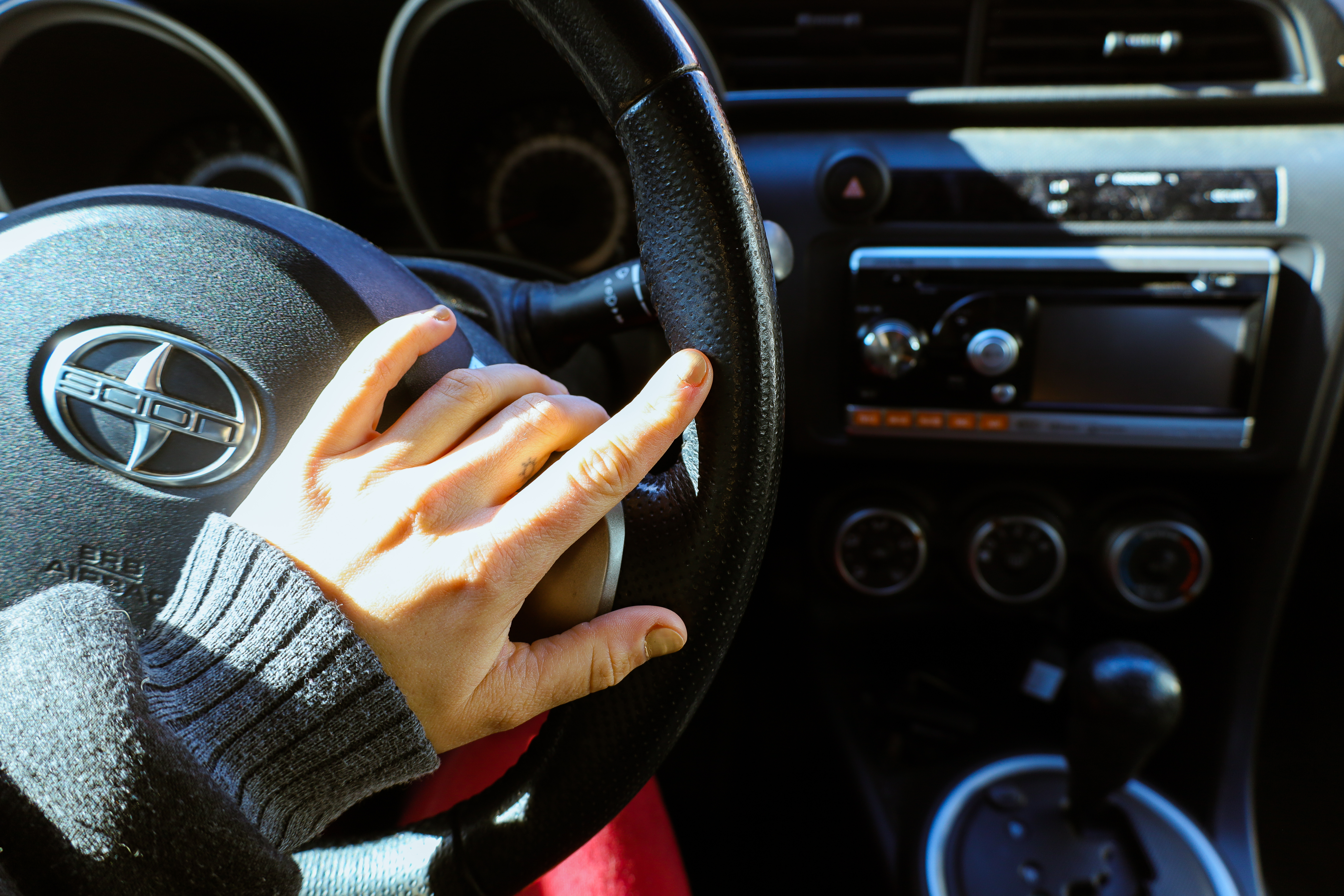 • Listening to music I can sing along to in the car so that those long red lights don’t tempt me while I’m driving (and as a school bus & delivery driver, I drive a lot!)
