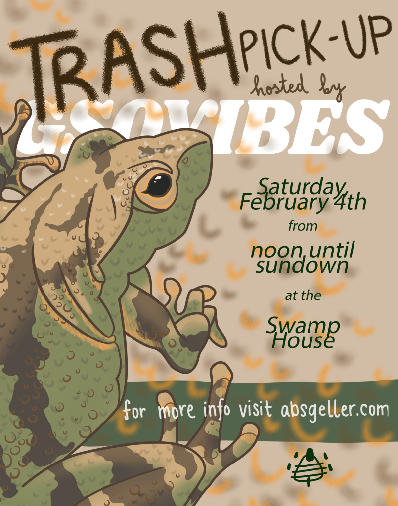 Purely because it sounds cool, the Frog Blog is named for the spring peeper I’ve been laboring over to advertise our next Trash Pick-Up event on Saturday, February 4th (and also one of the designs that will be available at the next Oden Brewing fest)!