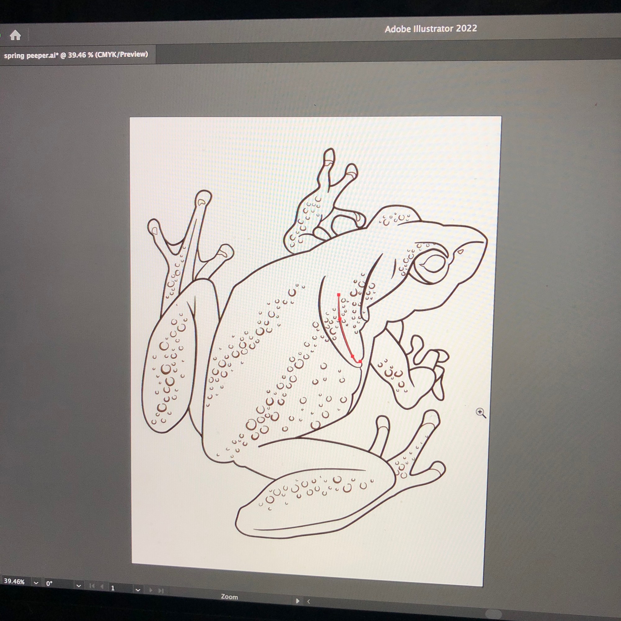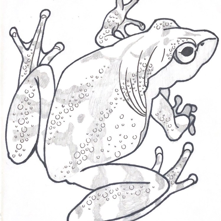 Learning how to use illustrator! This spring peeper was my first illustrator design ever. I sketch it on paper first, and I try to do it real big – so that if I choose to create a Workpath on Photoshop (and avoid drawing digitally altogether), it’s already big enough to be resized.