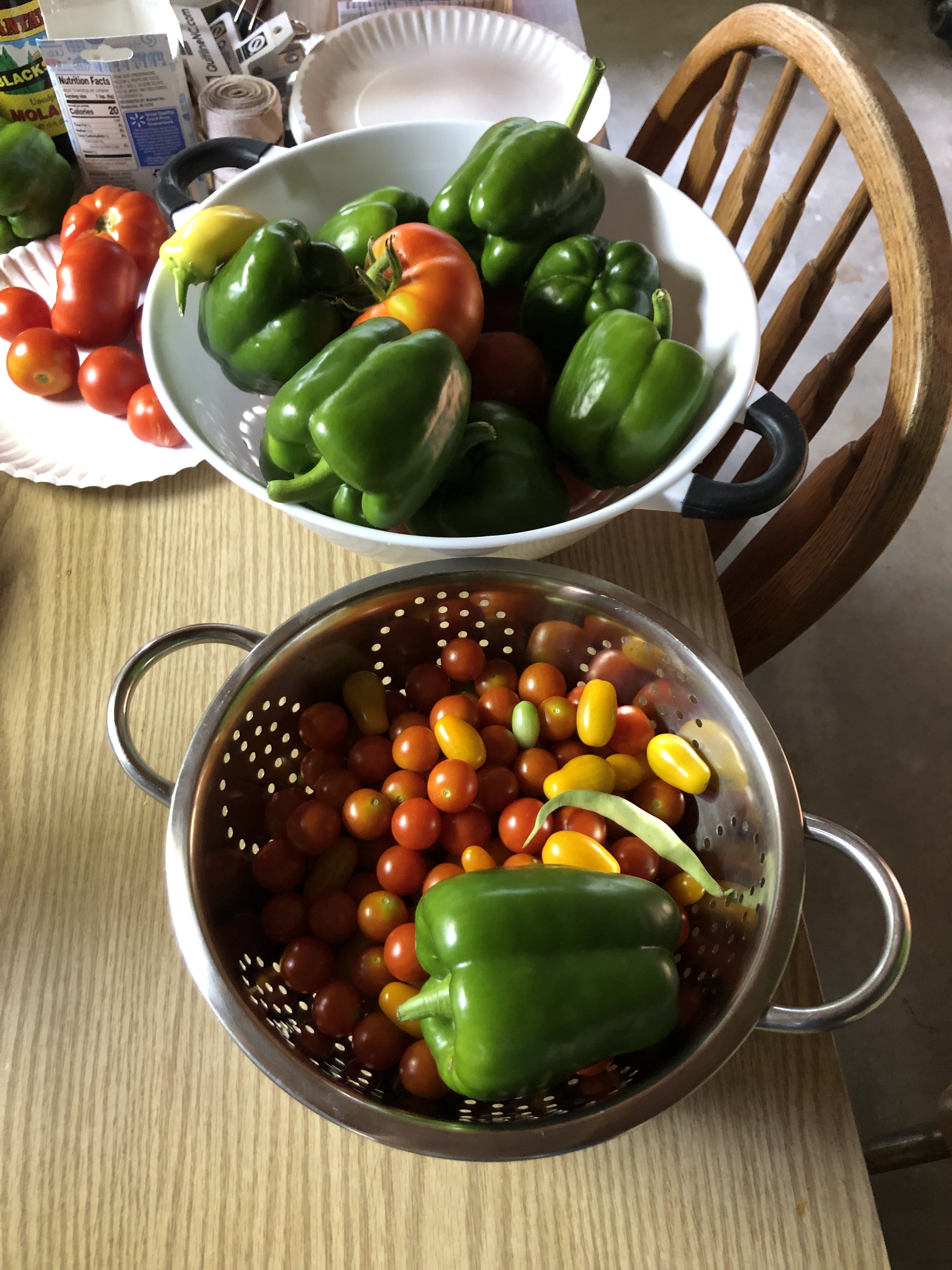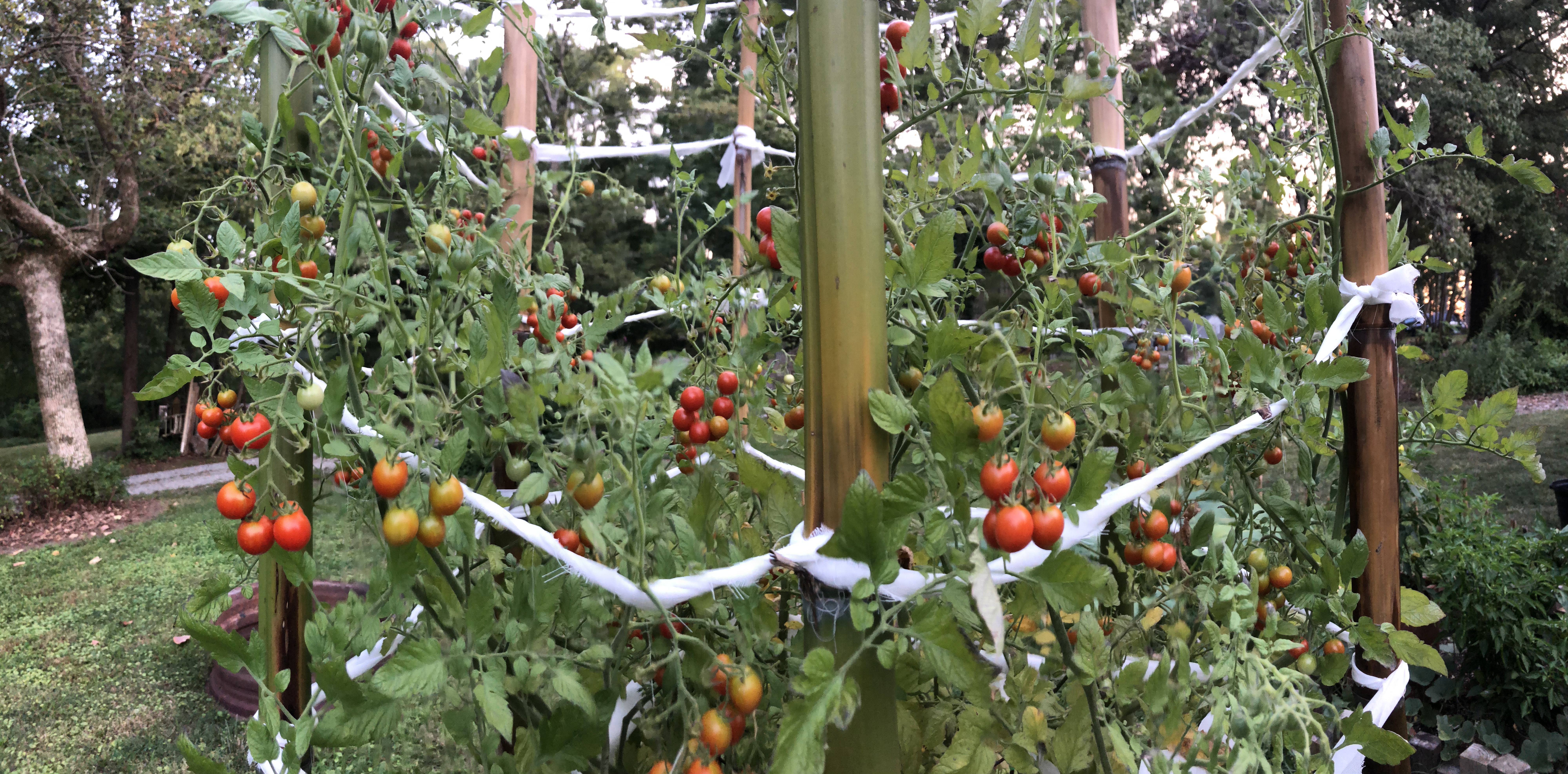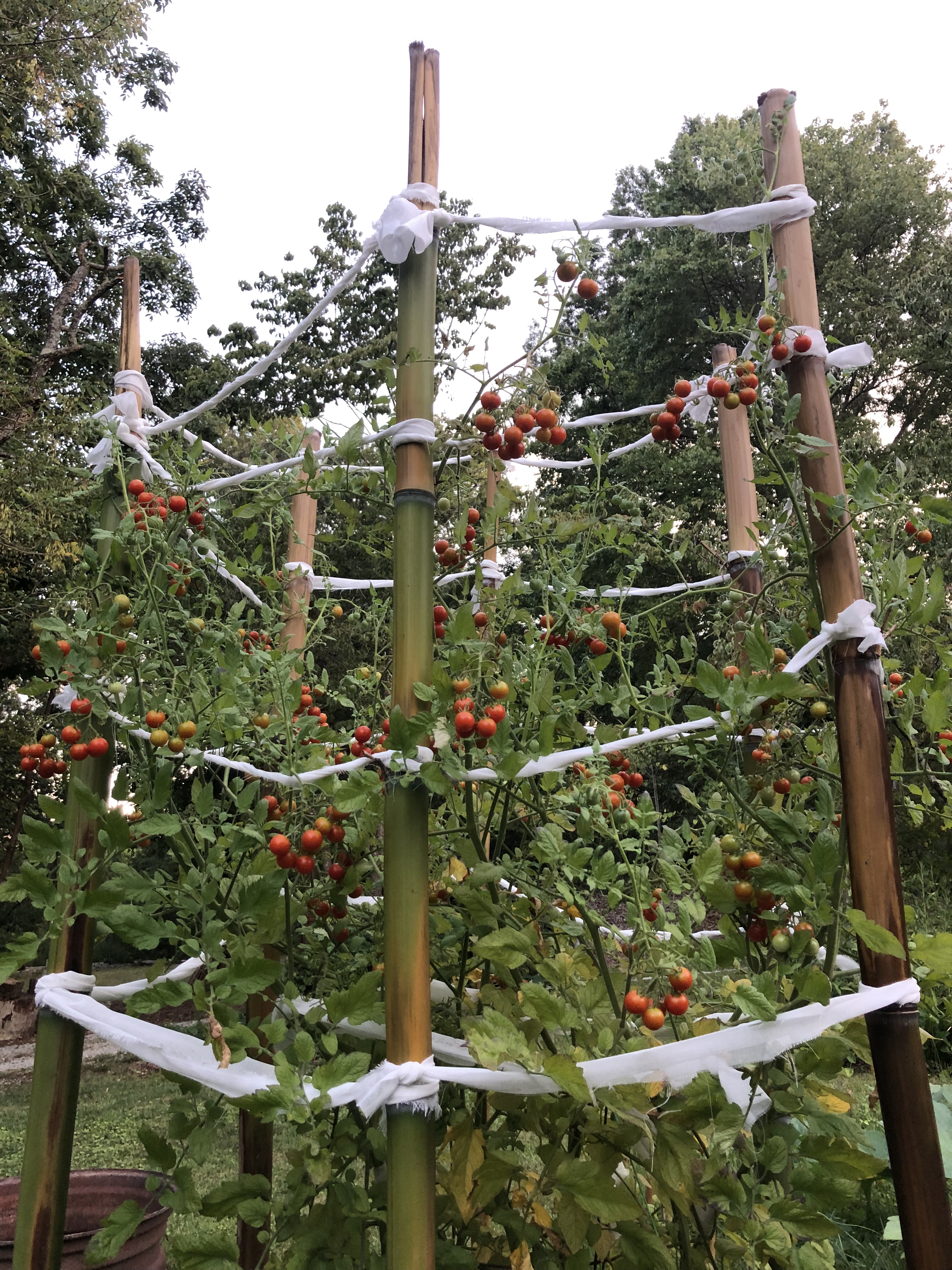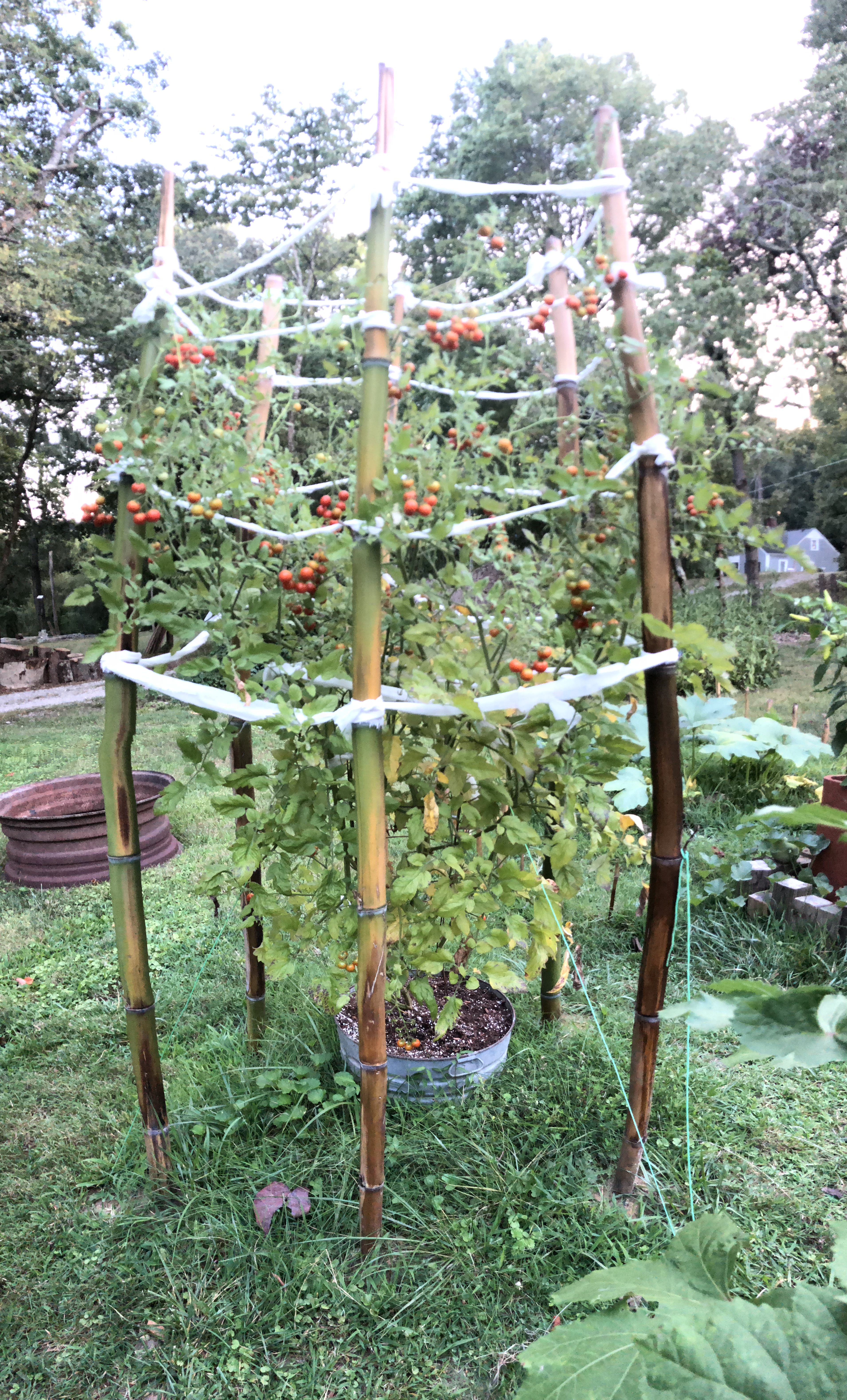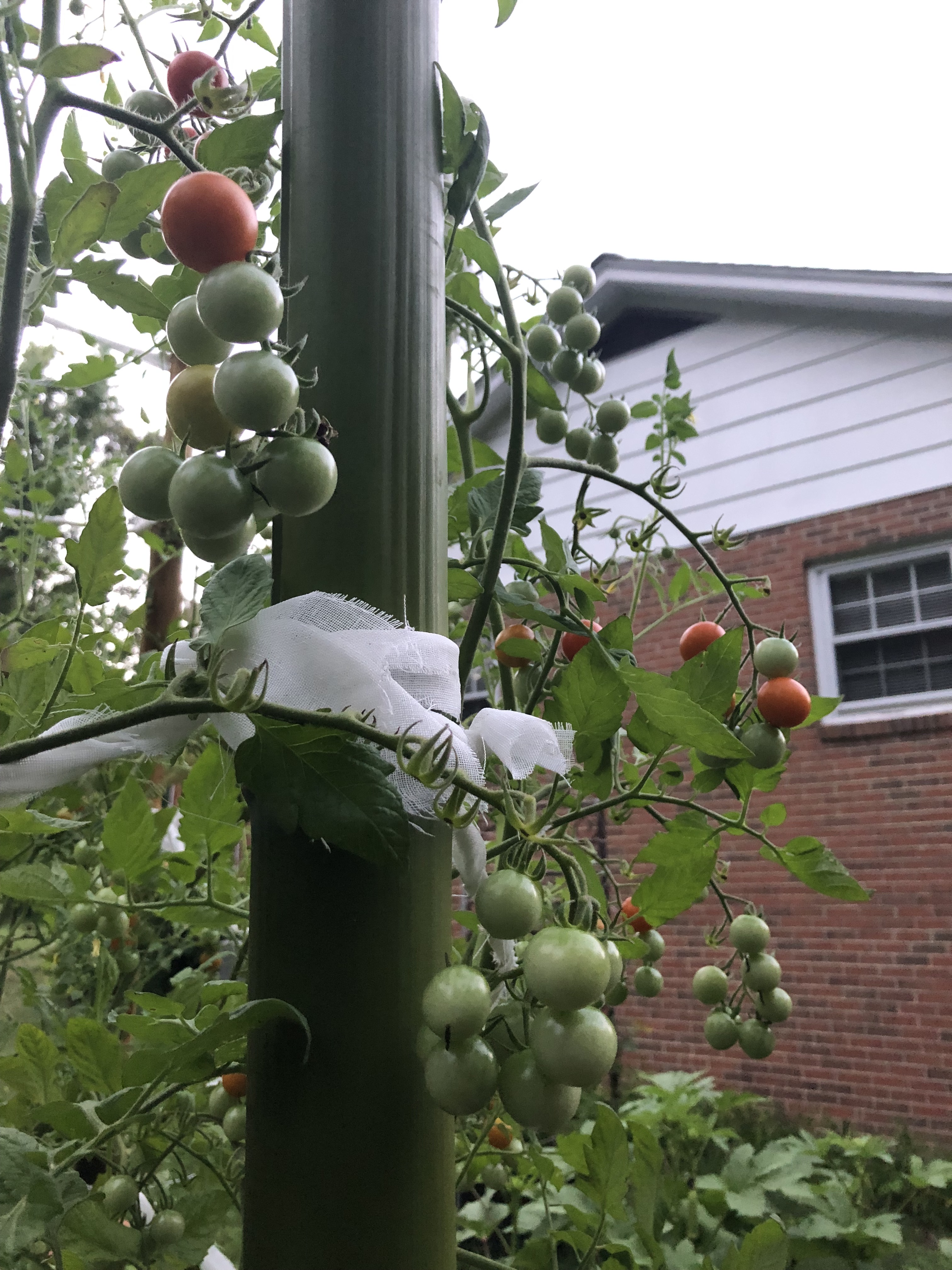 Below is our, like, ten foot tall cherry tomato plant. His name is chief. When we transplanted them from the pots gifted to us by Susan and Scott Duff (Pete’s parents), he lay flat on the ground in his pot at first. Everyone else gave up on him, but Pete and I knew he’d spring back up.