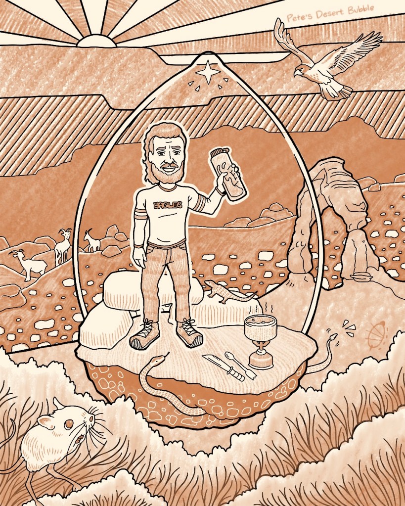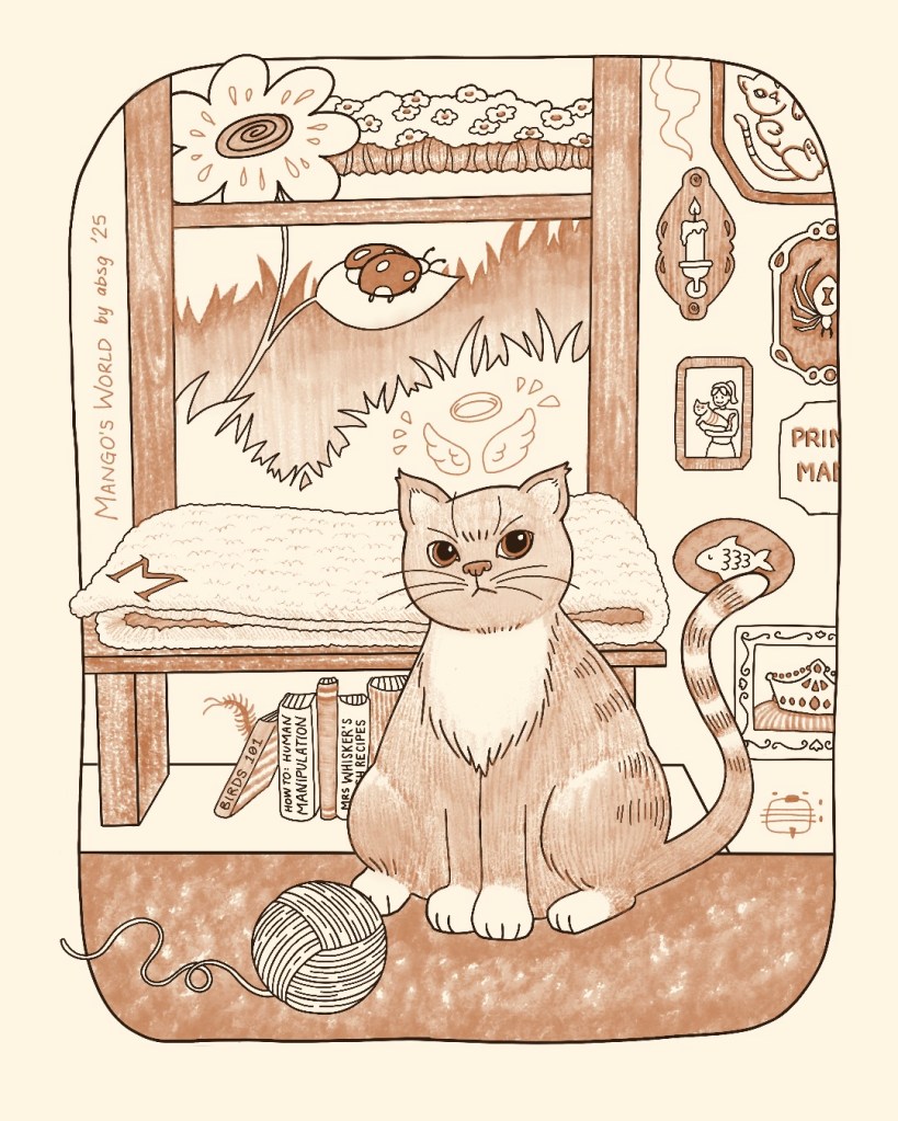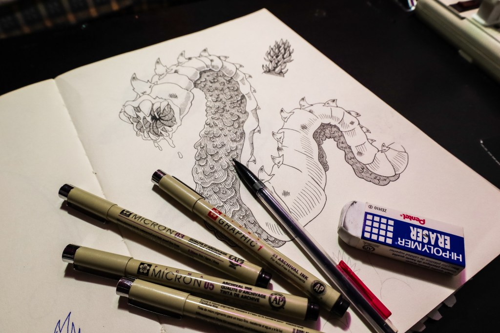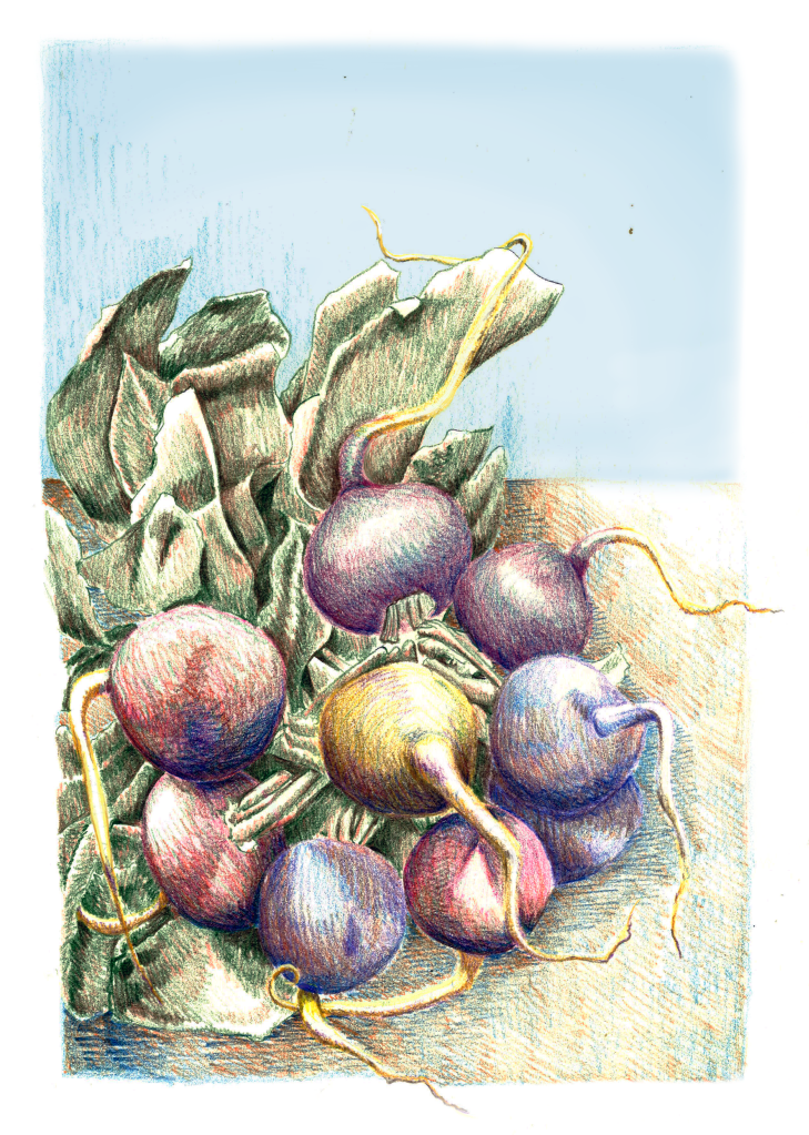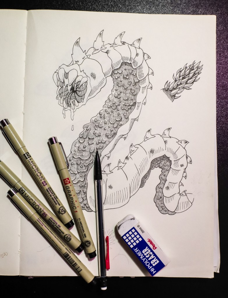 Shown below is the final product for print on the left, and the original illustration on paper on the right.