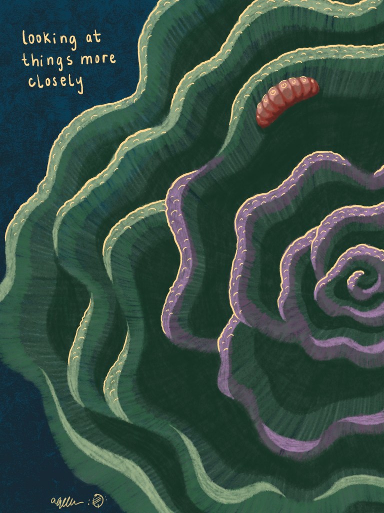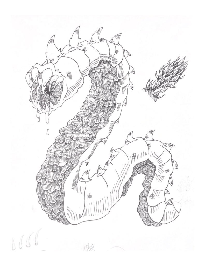 As you can see, I ran out of room for the tail of the worm. No matter! Photoshop at the rescue.