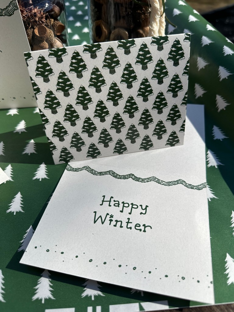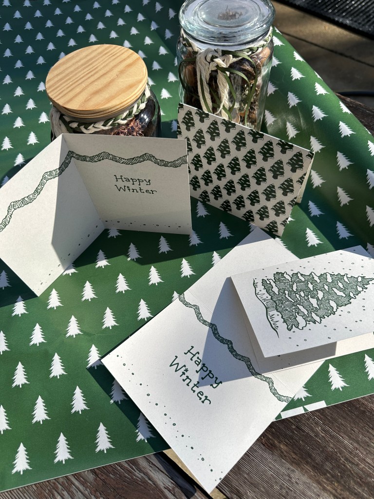 Note: Slides 1 and 2 were made in Procreate for advertisement purposes. The actual greeting cards and hand-cut stickers were designed in Affinity Designer.