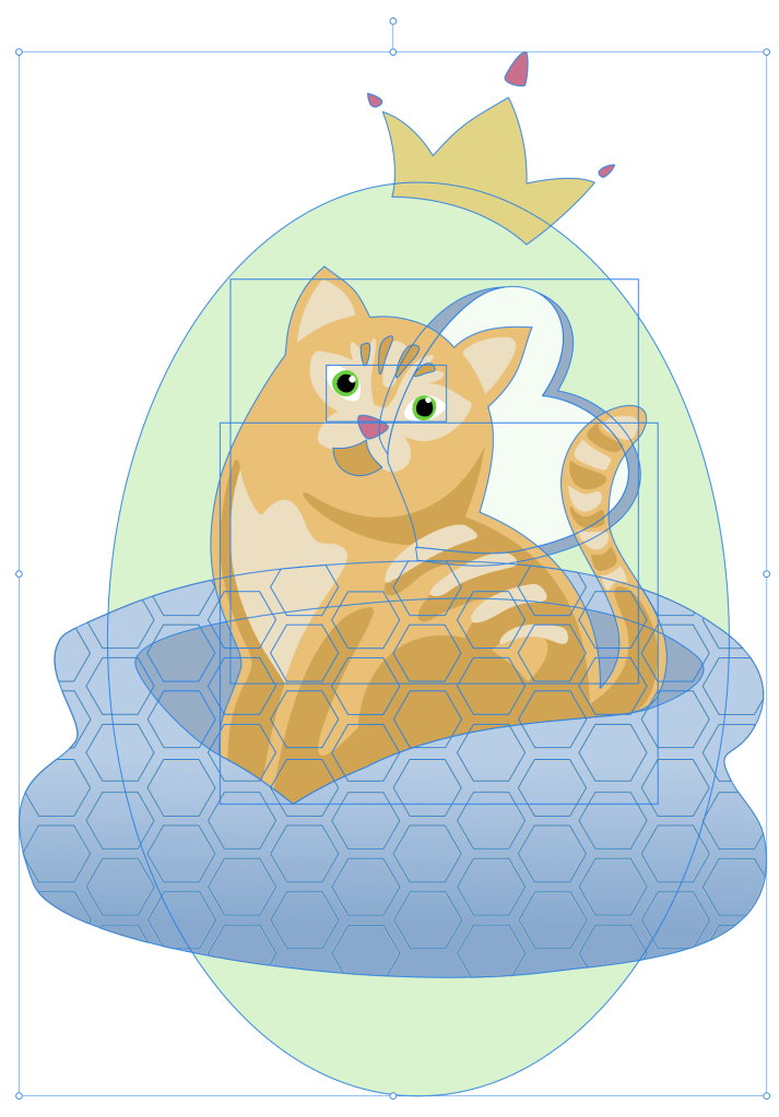 NOTE: The polka dots on the tennis ball’s hat and the stars on the racquet’s hat were applied using the Envelop Distort feature, which is why they appear differently from the outline mode to the final design.